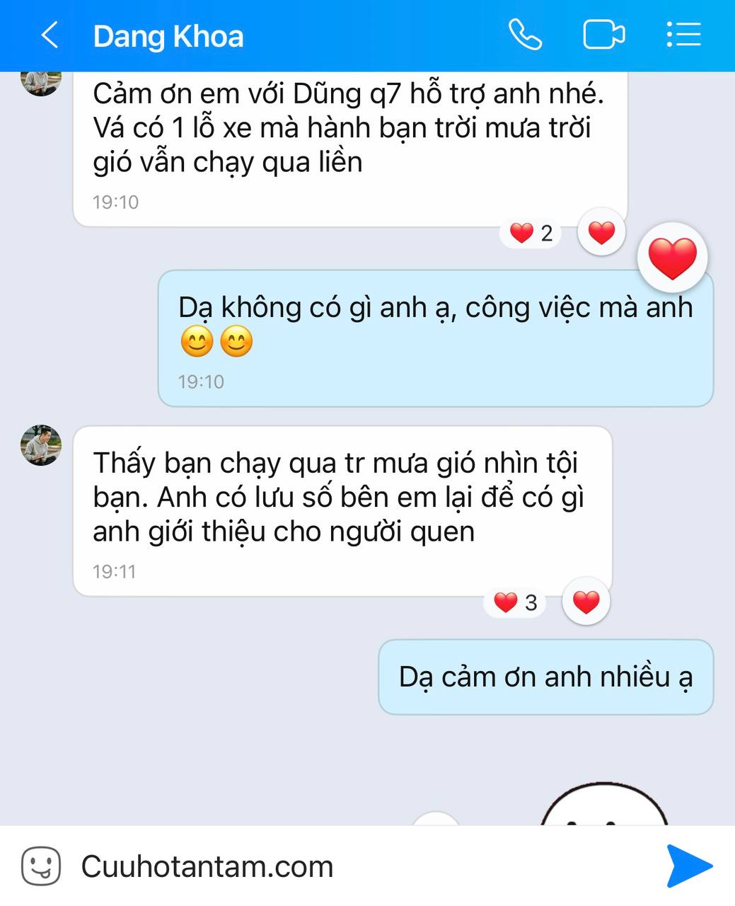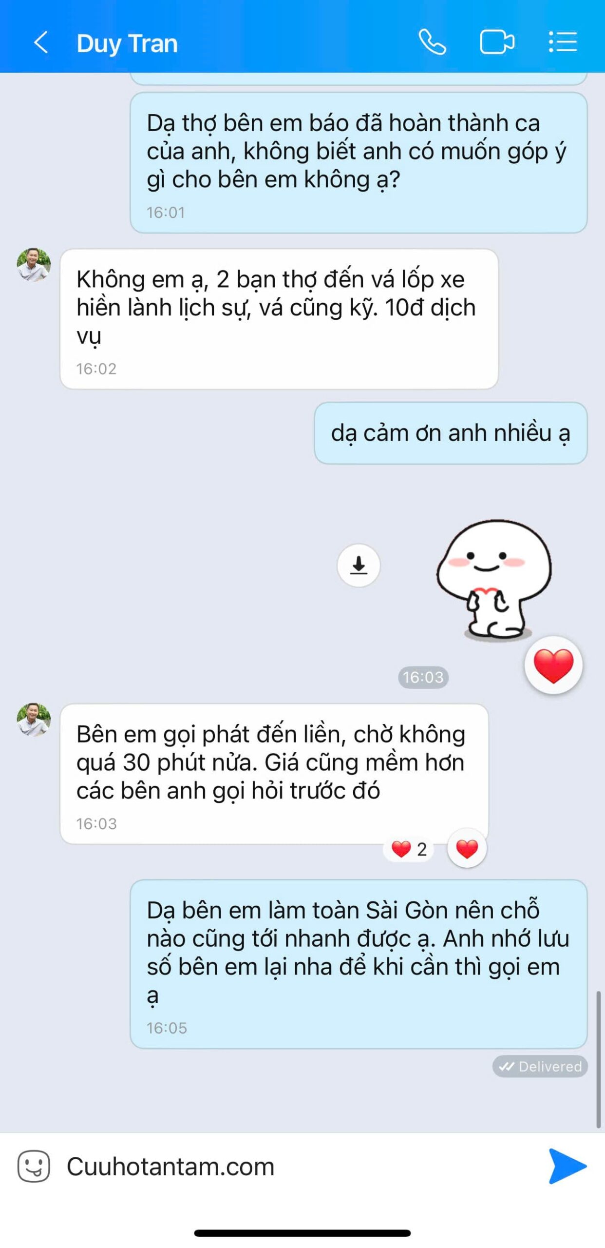 - Nếu lốp xì lại tại đúng vị trí cũ → cuuhotantam hỗ trợ vá lại miễn phí.