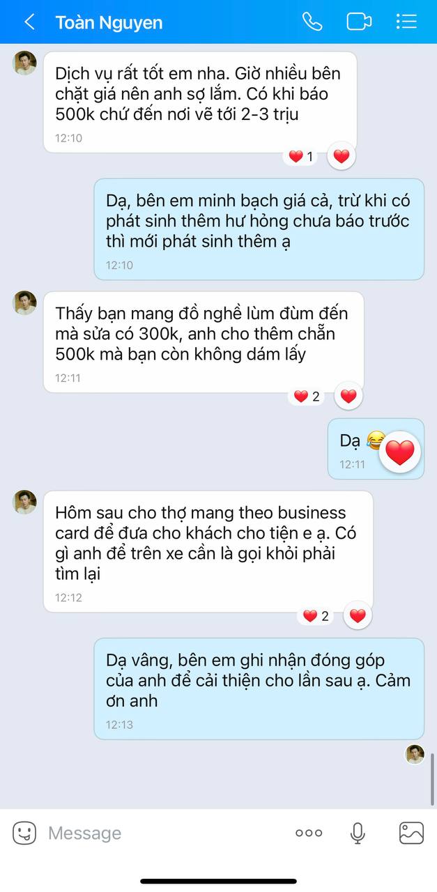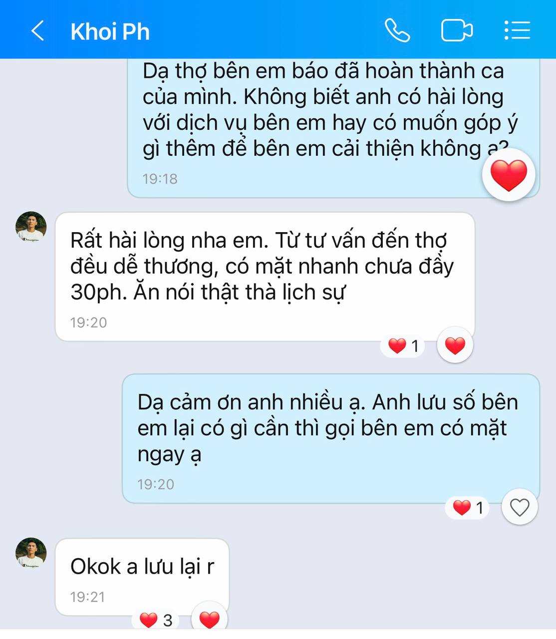 - Gọi xác nhận hài lòng dịch vụ (CSKH thực hiện sau khi thợ rời đi để lắng nghe góp ý từ khách hàng).